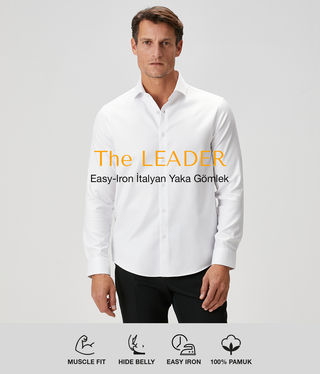The Leader | Qsimple Muscle Fit İtalyan Yaka - Easy Iron Gömlek – Beyaz
