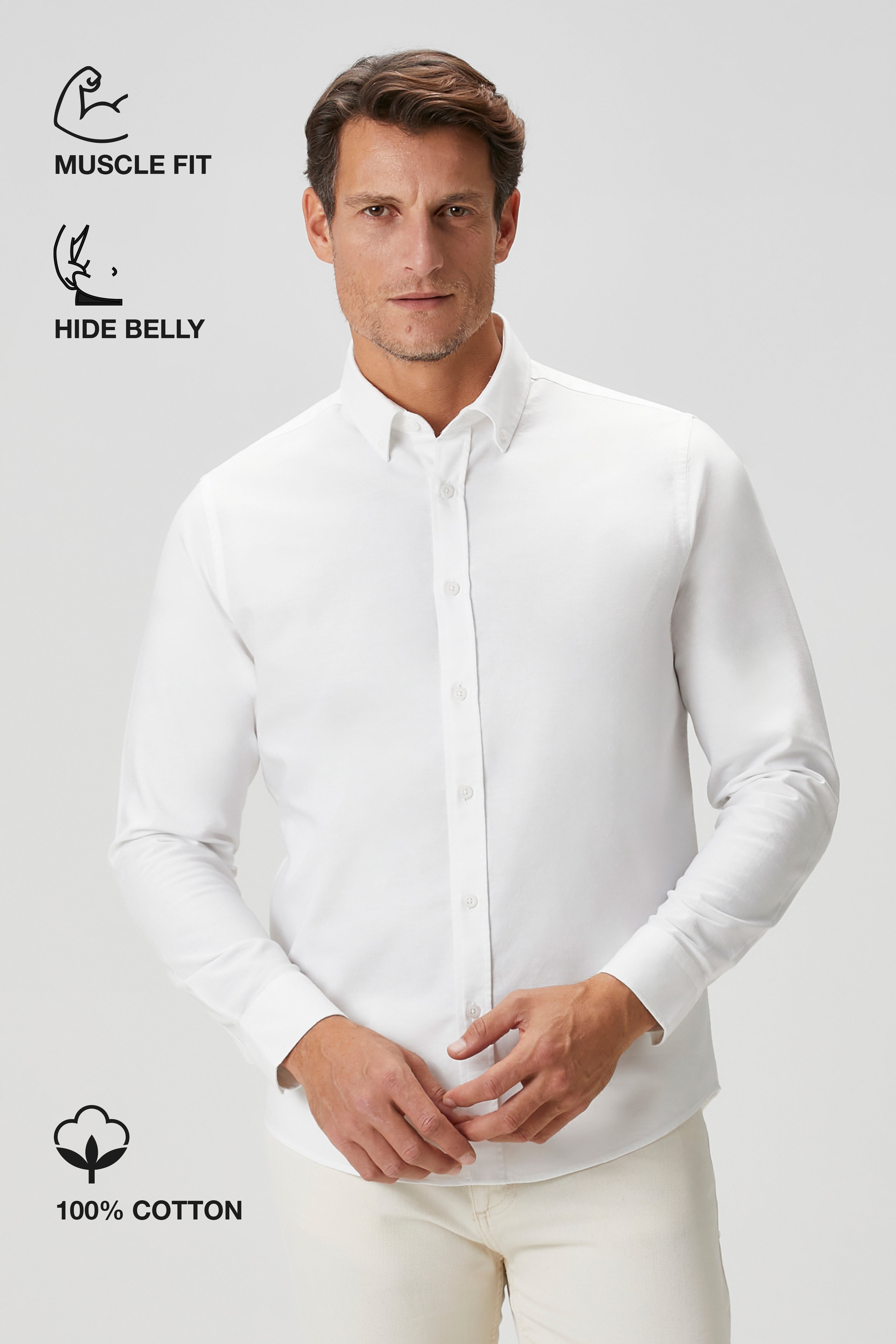 The Investor | Qsimple Muscle Fit Oxford Gömlek-Beyaz