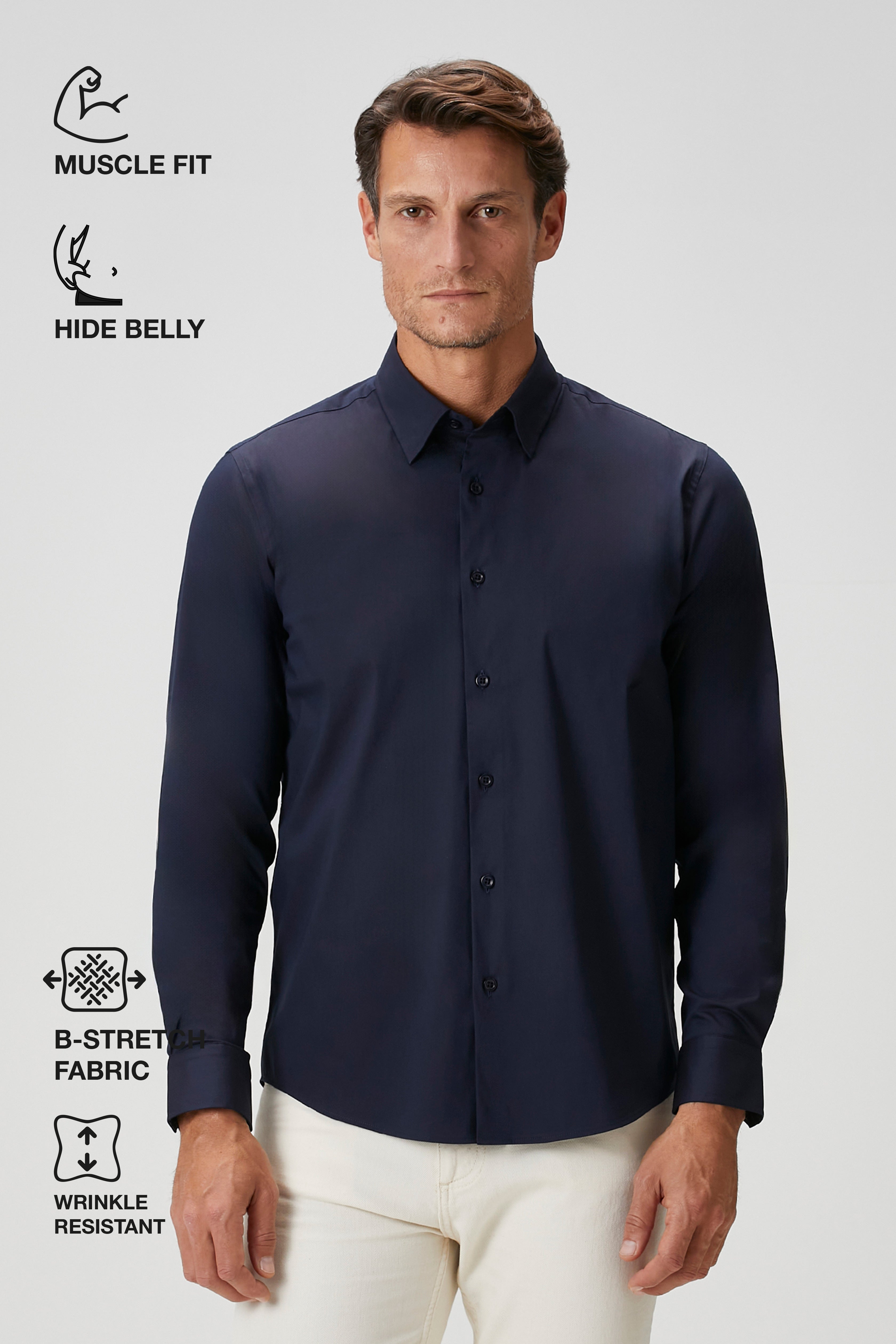 The Strategist | Travel B-Stretch Muscle Fit Gömlek-Koyu Lacivert