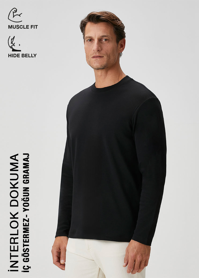 Oslo | Uzun Kollu Tişört – Premium Interlok Qsimple Muscle Up Fit - Siyah