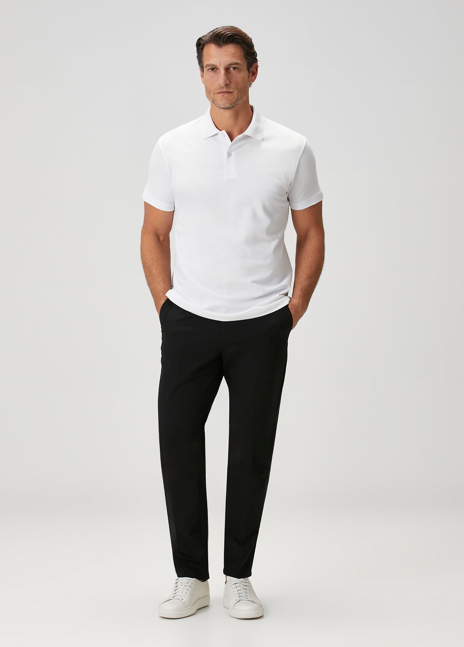 Saint-Tropez Polo, modern erkeğin gardırobundaki en çok yönlü parçadır. Gereksiz detaylardan arındırılmış gizli pat yapısı ve formunu koruyan dokusuyla her durumda keskin, güçlü ve rafine bir silüet sunar.