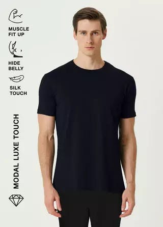 Basic T-shirt has been redesigned with a visionary design. Our design is designed to fit around the chest and shoulders with an elegant perspective. It covers your belly, if any, reveals your muscles and creates a personalized silhouette. So you always look your best throughout the day, from meetings to date nights.