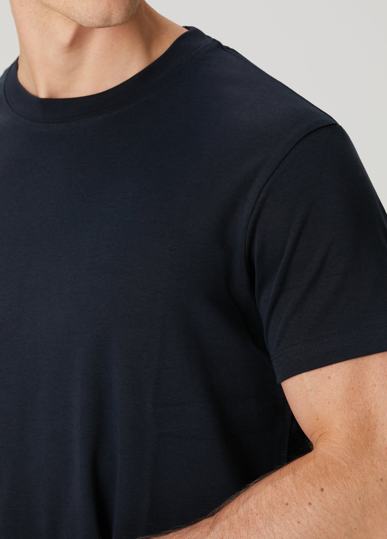 Thanks to its heavier weight fabric compared to standard t-shirts, it highlights the body lines but is not see-through.