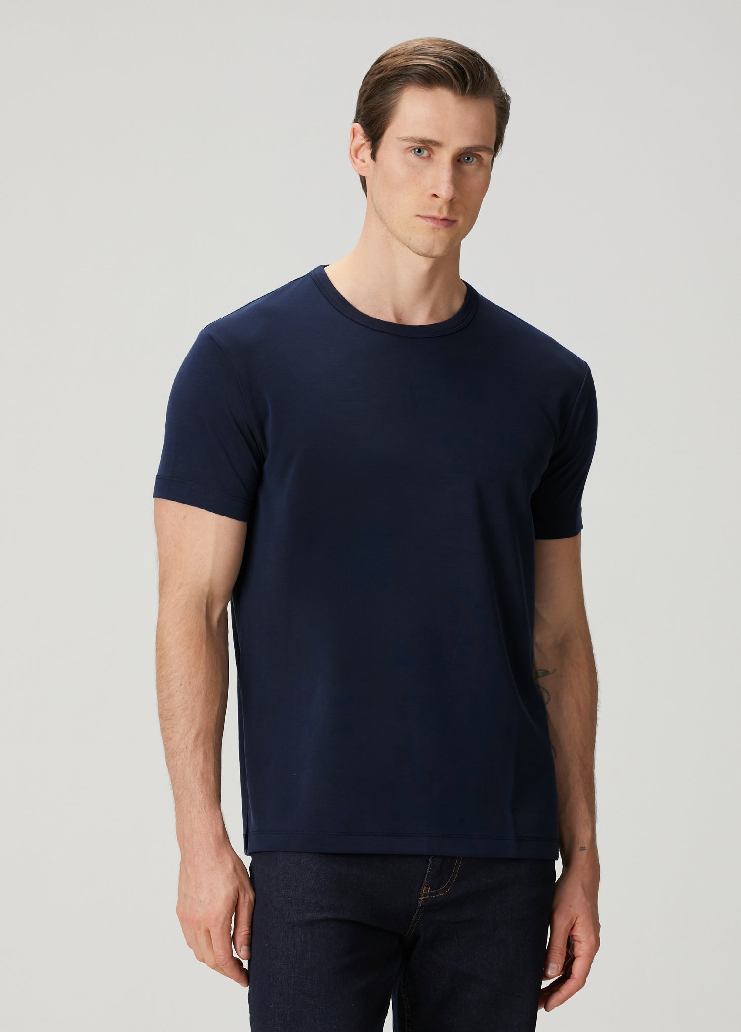 Qsimple Black Crew Neck Modal Men's T-Shirt