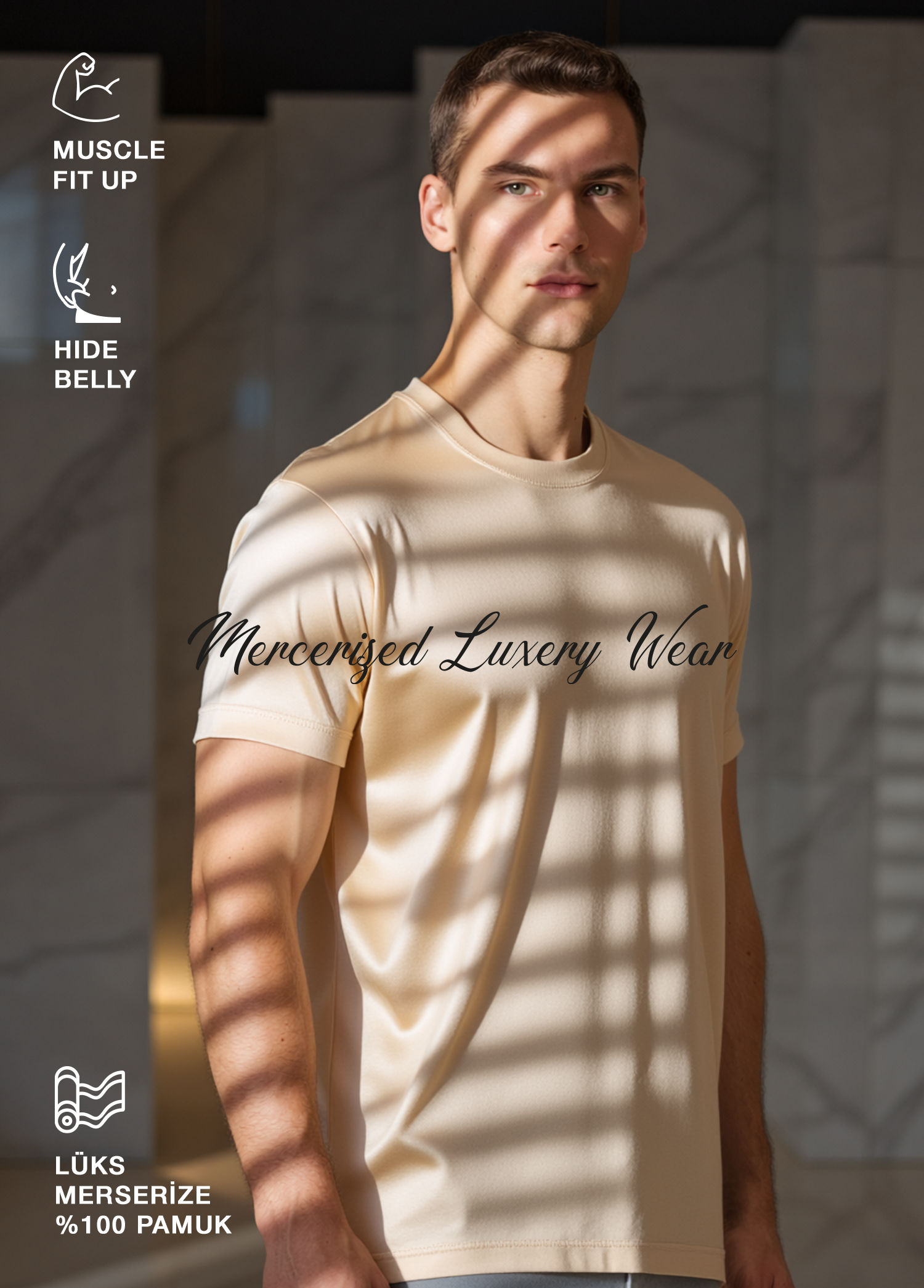 Lüks merserize pamuk tişört, ipeksi parlaklığı, zamansız dokusu ve güçlü formu ile sade şıklığın en rafine hâlini sunar.