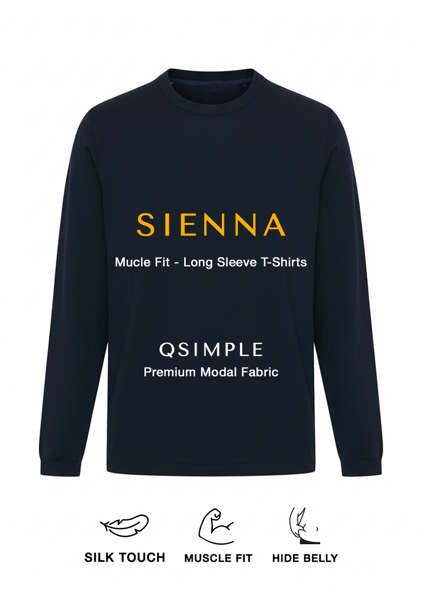 Siena | Uzun Kollu – Qsimple Muscle Fit Bisiklet Yaka Tişört - Koyu Lacivert