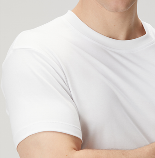 This T-shirt redefines our brand's iconic, muscle-accentuating cut with premium interlock fabric . Its thick weight offers a much more substantial look than traditional white T-shirts. With its ribbed collar and sheer fabric, it's specially designed for anyone looking to create a simple yet powerful style. It stands out as a powerful piece for both everyday wear and more stylish outfits.